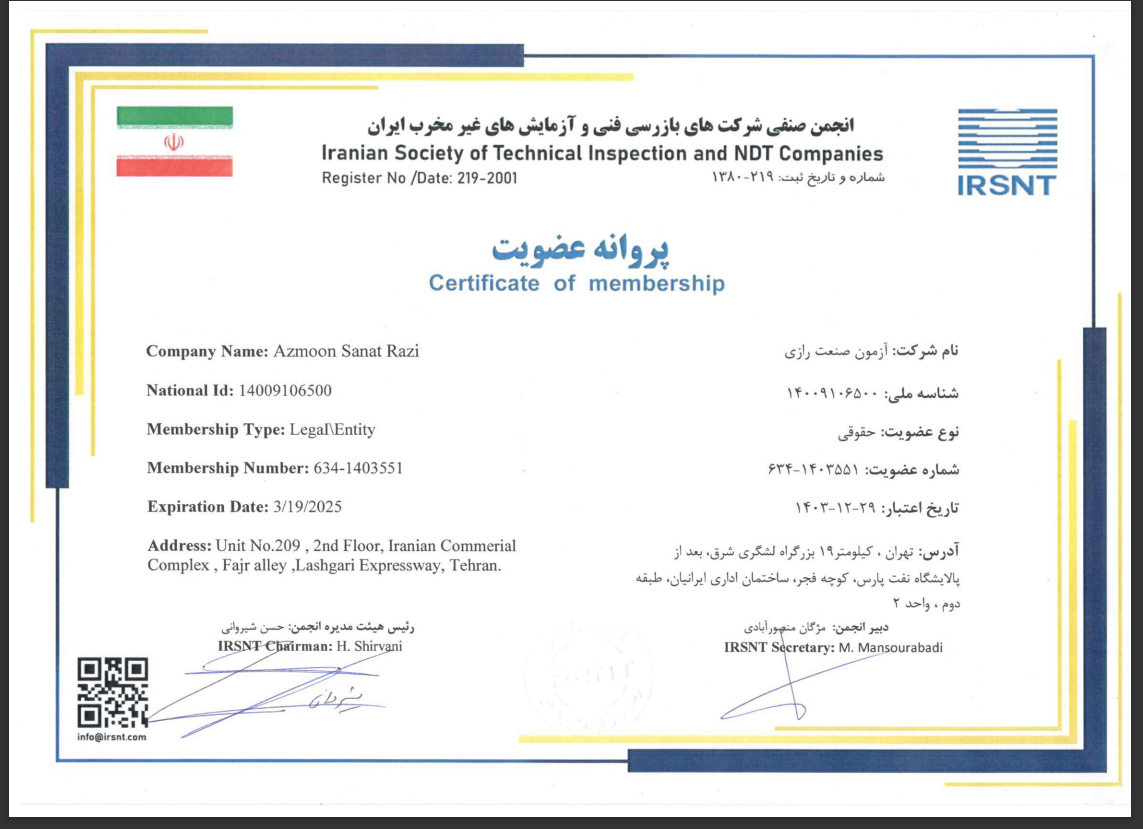 عضویت در انجمن شرکت های بازرسی فنی و آزمایشهای غیرمخرب ایران